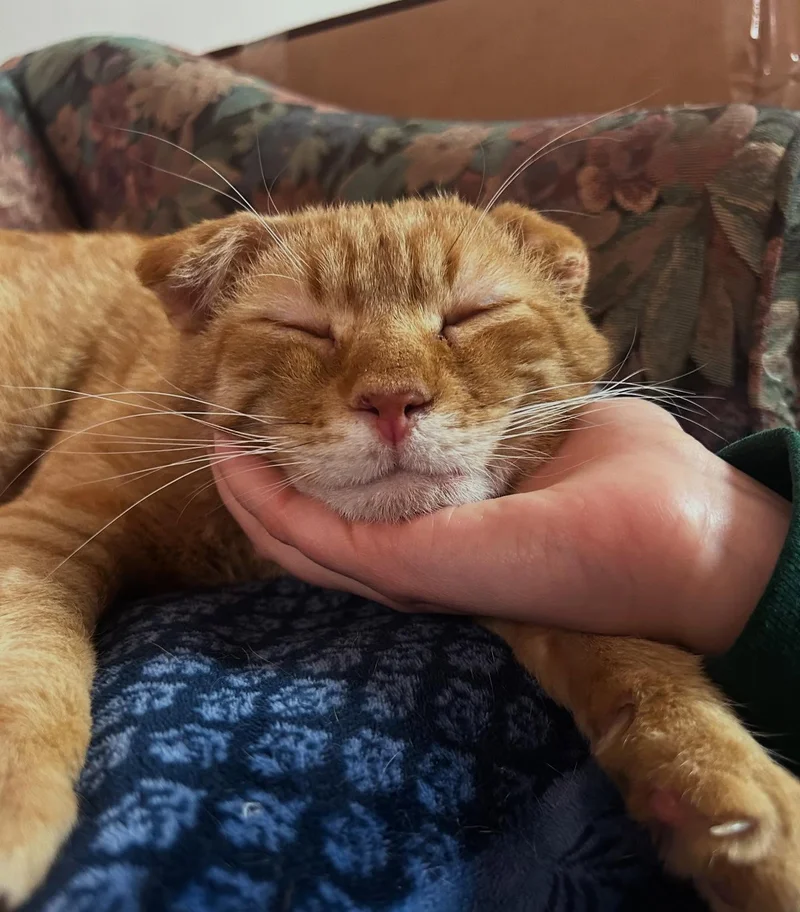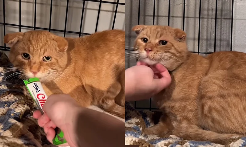 A woman noticed an orange cat with crumpled ears while driving home one evening, and that small moment of compassion changed the cat’s entire life. The woman, later identified as Emilie Rackovan, stopped her car near an auto shop to check if the cat was okay. As the founder of Thrifted Kittens Animal Rescue, she was used to helping strays, but this cat’s fragile condition caught her heart instantly. Sitting alone near a busy street, the cat looked wary and tired. Emilie gently offered him food, and even though he was scared, his hunger took over. That brief encounter marked the beginning of a long rescue journey — one filled with patience, care, and love that would eventually give this once-abandoned cat a second chance at happiness.