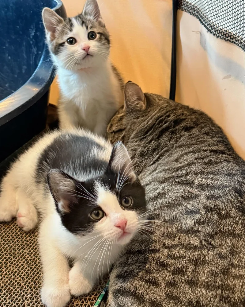 With her foster mom’s love, Eden gained confidence in raising her babies. The kittens thrived, turning into lively, chubby little explorers. “Eden is still a timid girl,” Heidi said, “but I know she’ll blossom with time after everything she’s been through.” Soon, the trio—Everette, Evan, and Elysse—were tumbling around with endless energy, while their mom enjoyed watching them from her cozy corner.