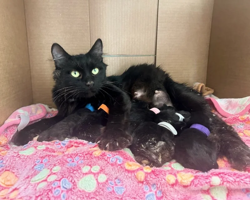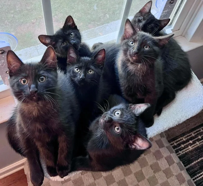 A stray cat approached a kind stranger and soon filled a loving home with her adorable look-alike “void” kittens — all black, fluffy, and full of charm. What started as a simple rescue turned into a heartwarming story of second chances and unconditional love.