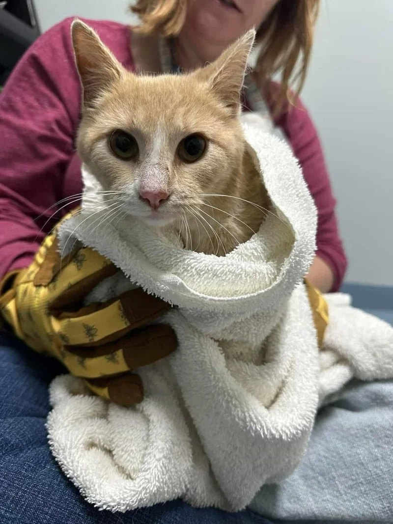 Peaches, a beautiful cream-colored cat, arrived at Friends of Rescue, a volunteer-run animal rescue, after being picked up by Animal Control in mid-April. She was heavily pregnant and in urgent need of a safe environment. At her foster home, she finally experienced comfort and kindness. Just eight days later, she went into labor, but sadly, tragedy struck. Despite veterinary efforts, her kittens did not survive, and Peaches had to undergo an emergency c-section that saved her life but left her heartbroken.