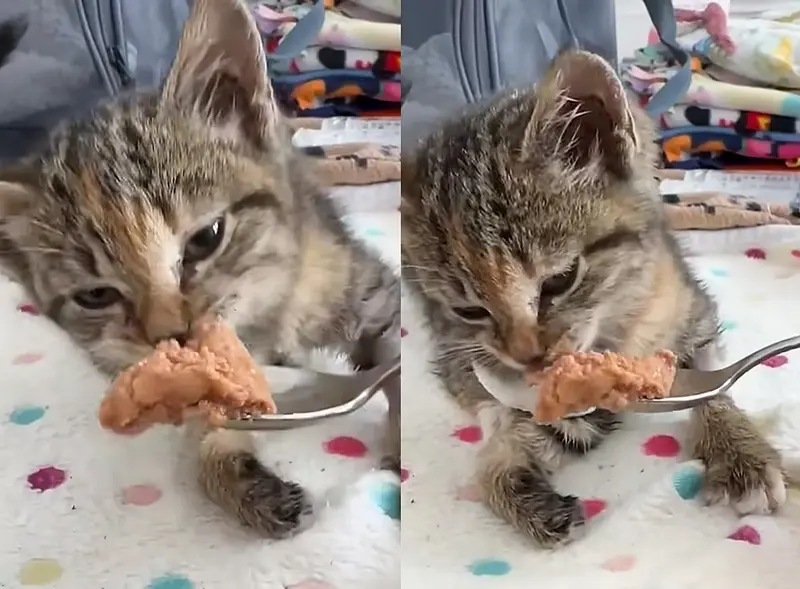 Because of her limited mobility, volunteers carefully spoon-fed Pebbles so she could eat properly. She ate eagerly, showing a strong appetite that reflected her will to live. Her tiny body might have been weak, but her spirit was unbreakable.
